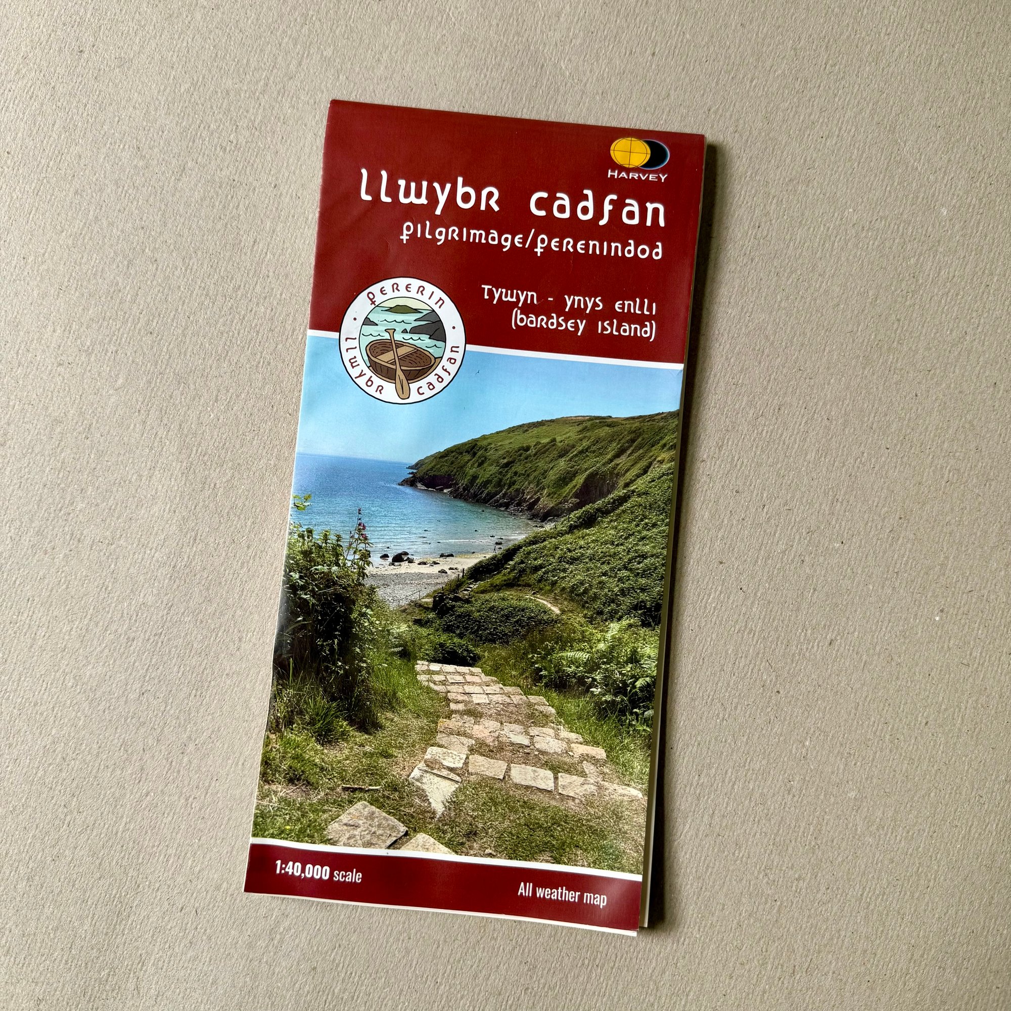 Harvey 1:40,000 scale, all-weather map of the Llwybr Cadfan route from Tywyn to Ynys Enlli. Size 24x12 cm. Map Harvey o Lwybr Cadfan o Dywyn i Ynys Enlli ar raddfa 1:40,000. Maint: 24x12 cm, addas ar gyfer pob tywydd.